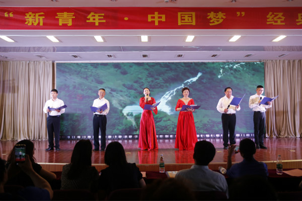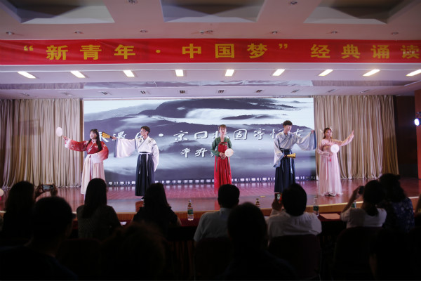 活动在《我们都是追梦人》的欢快歌舞中拉开序幕,《古诗词联诵》、《<梁家河>节选朗诵》、《天堂心语》、《声声慢》、《诗意中国》、《不一新的年代一样的青春》和《信念永恒》等诵读节目带领现场观众徜徉在文字的画卷中,演员们将对祖国的热爱化作一声声激情的诵读,将青春建功新时代的誓言和豪情化作高亢的声音响彻在图书馆报告厅的上空。最后在校大学生合唱团的《我和我的祖国》合唱声中活动圆满结束,全体演职人员和现场观众集体高歌,同祝愿共祝福我们伟大的祖国更加繁荣富强。