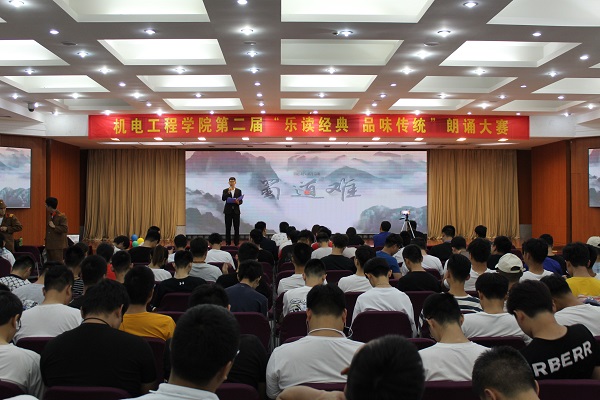 为了倡导学生阅读中华传统经典、热爱并传承中华传统文化,在读书中开拓视野、感悟人生、快乐生活,丰富人文精神,积极促进校风、学风建设,4月份以来,机电工程学院经过精心策划,组织开展了“书香校园 悦读人生”2019年读书节系列活动,全院一千余名学生积极参与,活动取得良好成效。