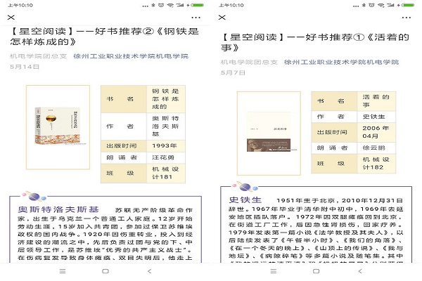 学院新媒体中心相继推出《师说心语》栏目和《星空阅读》栏目。在《师说心语》栏目中,老师们通过朗读《习近平讲故事》一书,使同学们在轻松的阅读体验中更好地理解中国,理解我们所在的世界,理解我们所处的时代。在《星空阅读》栏目中,同学们推荐自己喜欢的书籍,解读文字传递的生命讯息,寄托对生活极大的热情、阐发对宏观世界的思考。