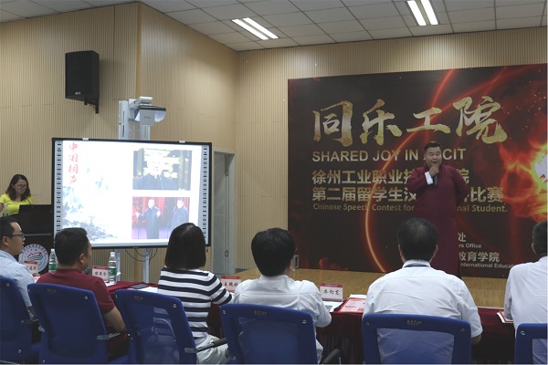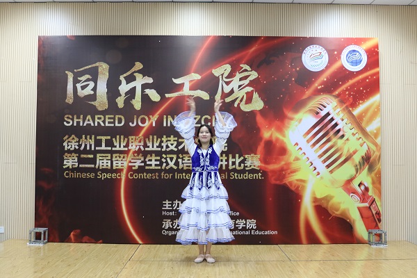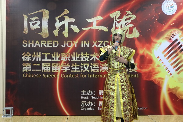 比赛在一段优美的哈萨克斯坦民族舞中拉开帷幕。主持人款款走向舞台中央,对各位评委领导的到来表示热烈欢迎,并预祝同学们在比赛中取得好成绩。比赛中,来自老挝的松王同学将自己学习汉语的各种方法向大家讲述;哈萨克斯坦的凌浩同学因体格壮硕自带喜感,把自己比作相声演员孙悦,逗得观众一阵阵大笑;老挝的拓网同学,从亲身经历出发,生动而活泼地向大家呈现了中国的非物质文化遗产徐州剪纸;摩洛哥的苏河西同学,身材高大、长相帅气,演讲时身披中国古时英雄的黄金战甲,更显英姿飒爽,刚一登台便赢得阵阵掌声……伴随着优美的音乐和图片,留学生用自己夹杂着洋腔洋调的质朴语言,展示了学习汉语的满腔热情和学习的成果,表达了对中国文化的无限热爱以及对学校和老师们的感激之情。每个选手演讲结束后,继续进行知识问答环节,重点考察留学生的中国文化知识,选手们回答问题基本正确,体现了留学生较高的中国文化素养。比赛最后阶段,老挝学生松王演唱了一首充满浓厚中国文化气息的歌曲《生僻字》,将中国人都难以识认的生僻词读得有模有样,引来了在座评委和同学热烈的掌声,更将比赛现场气氛带入高潮。
