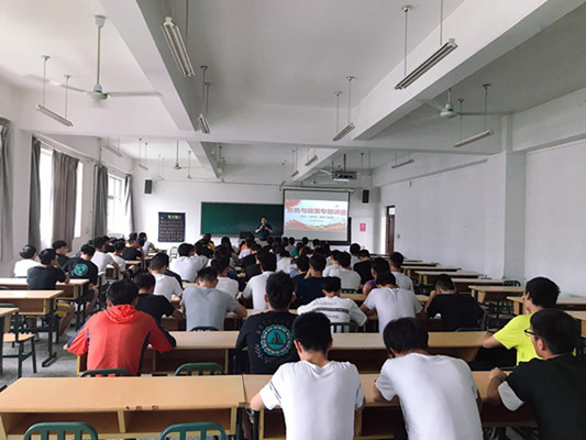 为进一步帮助广大师生了解中美贸易战始末原委,正确研判当前复杂形势,明确责任使命,7月4日下午,机电工程学院举办以“中美贸易战与中国周边方略”为主题的党课教育活动。本次党课由我校副院长鲍桂楠主讲,机电工程学院党总支副书记、副院长陈竹主持,学生党支部全体师生、第31期入党积极分子、学生会各部门常委、班级主要学生干部参与了此次党课的学习。