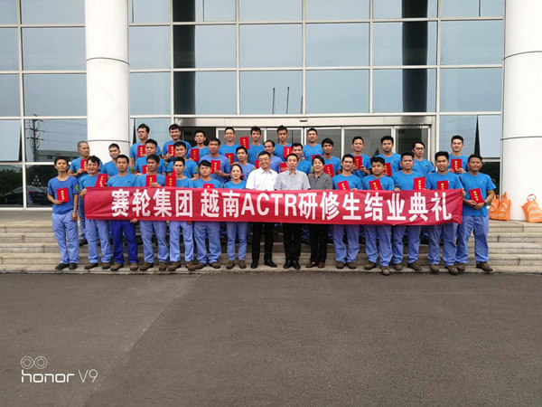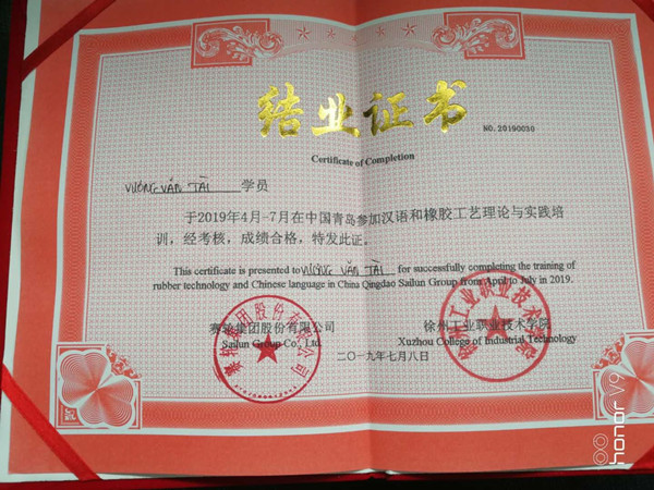 我校和赛轮集团共同承担的越南赛轮公司橡胶人才培训项目依据双方2018年签订的人才培养协议实施,是“徐州工业职业技术学院—赛轮越南有限公司人才培训中心”成立以来的首个培训项目。本次培训班于2019年5月3日正式开班,32名来自越南赛轮公司的青年学员参加了培训。汉语和橡胶工艺理论的培训由我校承担,岗位实践培训由青岛赛轮集团承担。学员们每天上午学习汉语、橡胶加工工艺理论方面的知识,包括生胶塑炼、胶料混炼、轮胎压延、硫化等工艺理论,下午到生产现场的各个工种岗位去进行实践培训。经过两个多月的培训,学员们已经能用汉语简单交流,提高了橡胶工艺理论水平得到了提高,岗位工种的操作和管理能力显著提升。经过考核,学员们达到了培训目标,取得了较好的培训效果,全员顺利结业。