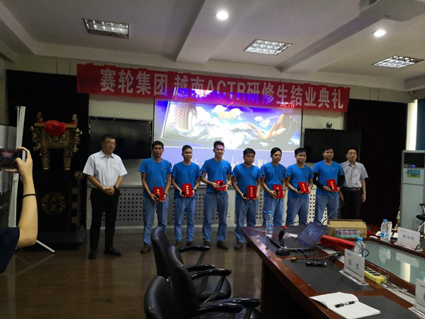 7月6日,“徐州工业职业技术学院—赛轮越南有限公司人才培训中心”的第一批越南赛轮集团骨干员工培训结业典礼在青岛赛轮集团隆重举行。我校副院长鲍桂楠、材料工程学院院长李素婷、外事办副主任王建华、赛轮集团副总裁赵永刚、生产部部长程恭、人力资源部培训处处长薛峰、授课老师和越南培训学员参加了结业典礼。