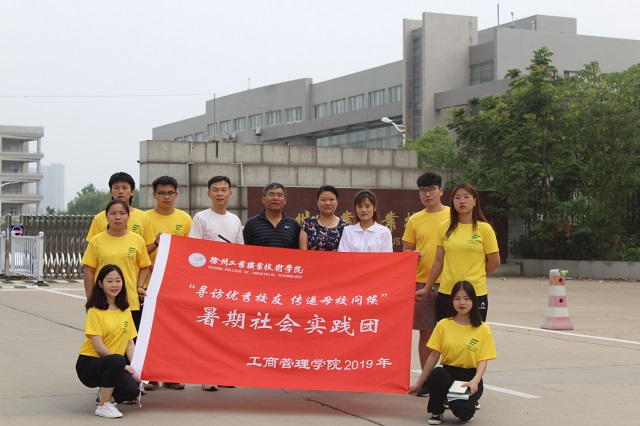 为献礼学校55周年校庆,挖掘校友资源,加强优秀校友与母校之间的联系,充分发挥广大校友在大学生就业、创业上的积极作用,徐州工业职业技术学院工商管理学院“寻走访优秀校友 传递母校问候”暑期社会实践团在校关工委席远东、郭荣光以及工商管理学院党总支副书记秦黎明、团总支书记曹远森、辅导员张荣等五位老师的带领下于7月11-15日相继走访了方舟、张婉君、佟会芳三位优秀校友,通过采访形式了解大学生就业、创业的艰辛与成功的秘诀。