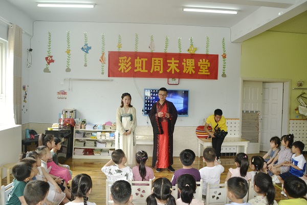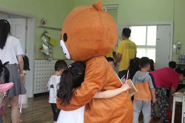 7月13日,实践团成员到达社区下辖幼儿园,集中为留守儿童带来彩虹周末课堂。实践团为留守儿童带来主题为“远离伤害保护自己”安全课程,生动形象的场景模拟使孩子们增强自我保护意识,学会更好的保护自己。实践团还为留守儿童带来传统礼仪小课堂,引导孩子们从小感受到中国传统文化的博大精深。此外,实践团还贴心的为留守儿童庆祝生日、陪伴孩子们唱儿歌、玩彩泥、和孩子们一起开心地做游戏、亲密互动,实践团成员余丽婷同学不顾炎热的天气,穿上厚厚的人偶衣服,装扮成憨态可掬的小熊,逗小朋友开心,孩子们脸上洋溢着幸福、欢欣的笑容,欢声笑语久久回荡在教室里。同学们用行动践行社会责任担当,用爱点亮生命,用心温暖孩子们的童年。