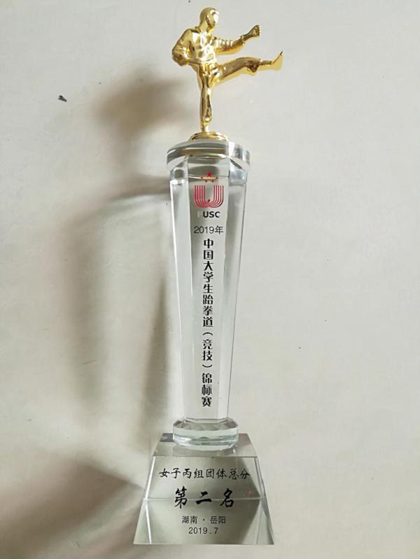 7月19日至7月25日,由中国大学生体育协会主办的2019年中国大学生跆拳道(竞技)锦标赛在湖南省岳阳市体育中心拉开战幕,来自北京大学、北京体育大学、浙江大学、南京大学、深圳职业技术学院、南京信息职业技术学院等132所本专科院校的1300余名选手参加了比赛。经过激烈的角逐我校运动健儿最终获得一金、一银、三铜和两个第五的单项成绩,荣膺女子团体总分第二名。