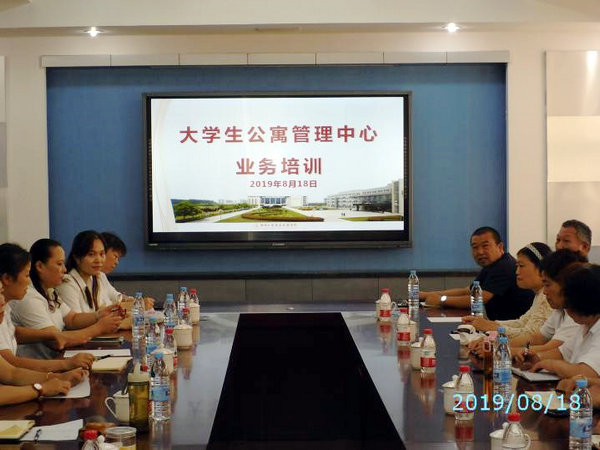 为进一步提高我校大学生公寓管理人员的业务能力、提升公寓管理人员服务意识,学工处大学生公寓管理中心于8月18日上午在行政楼三楼会议室举行了业务培训会。会议由学工处副处长安莹主持,大学生公寓管理中心全体老师及新华物业公司负责我校大学生公寓托管项目的全体员工参加了此次培训。