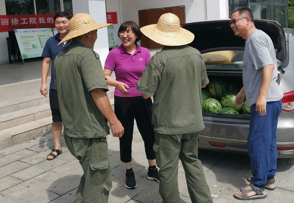 党委副书记李红一行先后实地察看了食堂、宿舍、图书馆、操场等装修施工现场,走访了招生办公室、保卫处、后勤、现教中心、财务处等部门。他们对工程建设进展情况、暑期工作开展情况进行详细了解,亲切慰问不畏酷暑、为学校发展坚持工作在第一线的教职工们,为他们送来了解暑的西瓜和饮料,提醒大家注意施工安全,叮嘱大家一定要做好高温天气下的防暑降温工作。