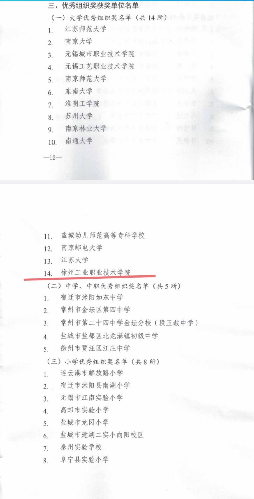 本次省高校软笔书法共评出50名个人获奖者,其中一等奖3名、二等奖6名、三等奖15名,优秀奖26名。化学工程学院学生姜威的书法作品“消除贫困改善民生逐步实现共同富裕”和信息与电气工程学院学生刘海斌的书法作品“资助育人促进教育公平和社会公平”分别荣获大学组软笔书法三等奖、优秀奖。在全省高校中我校是荣获优秀组织奖的14所高校之一,也是仅有4所获此殊荣的高职院校之一。