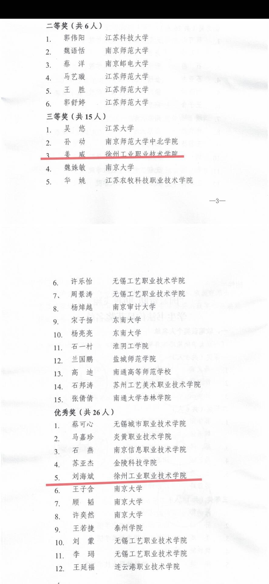近日,从省学生资助管理中心获悉,在日前开展的江苏省“国家资助 助我飞翔”学生书法作品征集评选活动中,我校荣获优秀组织奖,姜威、刘海斌两名同学分别荣获大学组软笔书法三等奖、优秀奖。