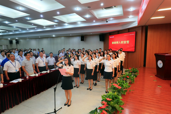 2019年刚加入徐工院大家庭的新教师进行了入职宣誓。他们的宣誓铿锵有力、掷地有声,表达了要努力成长为一名有理想信念、有道德情操、有扎实学识、有仁爱之心的“四有”好老师的信心和决心。