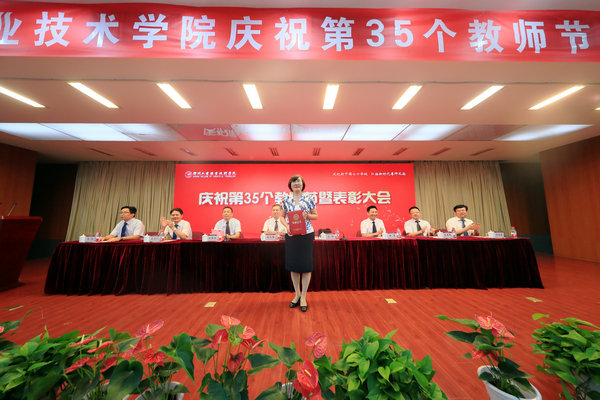 9月9日下午,我校在图书馆多功能厅召开了庆祝第35个教师节暨表彰大会。校领导祝木伟、李红、鲍桂楠、徐勇、朱作付出席大会,全体教职员工参加大会。党委书记祝木伟发表讲话,党委副书记李红宣读表彰决定,副院长鲍桂楠主持大会。