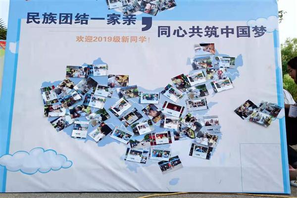 在今年的新生队伍里,有许多来自不同民族的同学,同学们热情相迎。不同地区不同民族的学生在中国地图上,以特殊的方式签到,来到建筑工程学院大家庭。