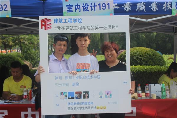 以迎新现场为背景,学生与父母、亲朋好友的合照,“我与建筑工程学院的第一张照片”引起每一位新生同学的驻步,与家人、与好友留下自己在建筑工程学院的第一张合影,并且得到一张免费冲洗的照片,作为留念,成为迎新现场人气最高、必须打卡的地方,同学们排长队竞相留下自己与建筑工程学院的第一张合影。