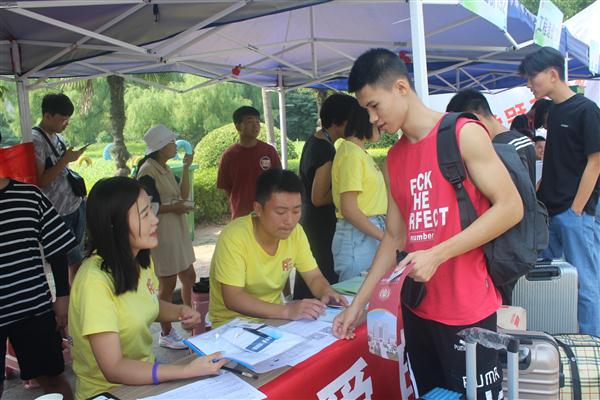 校园内外,志愿服务身影勤奋;满腔热情,青春绽放喜迎新。为广大新生及其家长提供了细致周到的入学报道服务。他们以饱满的精神状态投入到工作之中,分工协作、环环相扣。有的志愿者奔波于校门口和各个报到点,将新生们准确引导至报到地点;有的志愿者引导有需求的新生及家长前往绿色通道处办理相关事宜;更多的志愿者带领已完成报到手续的新生前往新宿舍。他们奔波忙碌,及时为新生和家长提供温馨周到的服务。志愿者以微笑做好服务,以行动温暖新生,成为校园迎新工作一道靓丽的风景线,受到广泛赞誉。