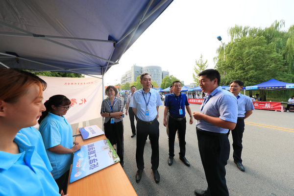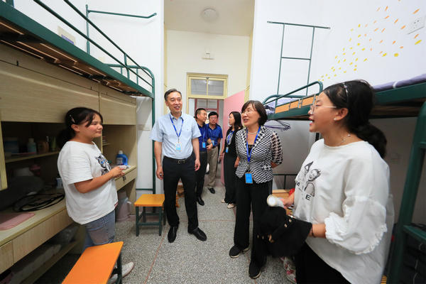 校领导亲临迎新现场、走访学生宿舍,了解迎新工作开展情况,看望慰问参与迎新工作的师生和已经报到的2019级新生,叮嘱各部门师生以热情细致的服务让学生满意、让家长放心,确保迎新工作平稳进行。