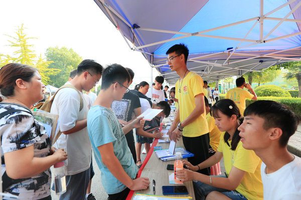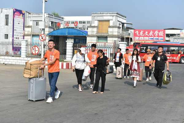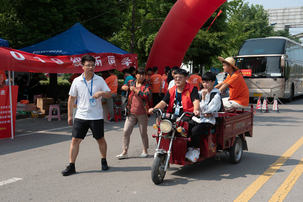 学校在火车站、高铁站、汽车站等均设立新生接待点,9月6日早晨6点,志愿者们已经在迎新站点守候。班车从学校出发,迎接新生和家长,方便新生快速到达学校完成报到手续。