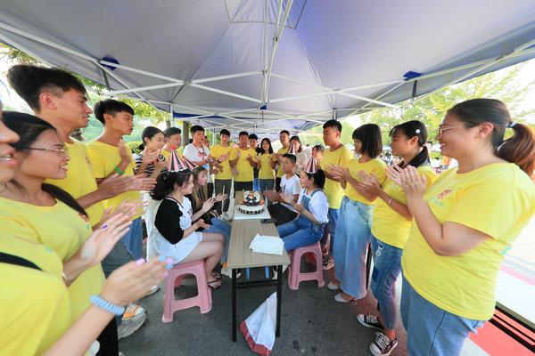 当满载新生的班车抵达学校门口,早已等候多时的各二级学院的志愿者们就热情的迎了上去,将新生带至各自学院的迎新点。志愿者们顶着烈日主动帮助新生和家长搬运行李,给新生和家长介绍学校,耐心细致地解答家长和新生的疑问。