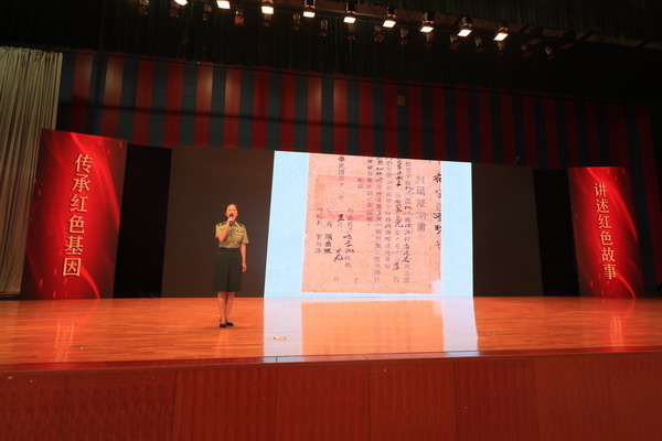此次淮海战役精神宣讲团一共讲述了八个红色故事,大量的文献、文物资料,再加上宣讲团成员饱含深情的宣讲,不仅给同学带来了视听盛宴,也带来了深深的触动。《战火中的全家福》主人公陈洪汉在战场上英勇牺牲时,他的怀里还揣着一张被鲜血浸染了的拍摄仅仅五个月的全家福照片;《一生守望一世情》主人公李凤兰用一生守望丈夫,兑现着“我等你回来”的承诺;《小推车》主人公高全忠带着小推车运粮队奔赴前线,誓死护军粮……母送子、妻送夫,无数的人民子弟兵前赴后继、壮烈牺牲,只为推翻反动统治、人民当家作主人。一幕幕鲜活生动的革命英雄事迹,一曲曲响彻云霄的爱国主义壮歌,感人肺腑,激荡心灵,在广大青年学子心中烙下深深的红色印记,让全体师生沐浴了一场爱国主义教育的精神洗礼!