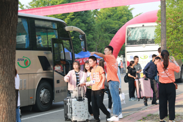 在高铁站、火车站、汽车总站和汽车南站等4个站点均有我校新生接待站。青年志愿者第一时间与新生对接,积极提供行李搬运、候车引导等服务,确保新生及家长能够便捷、安全地到校报到。为了舒缓新生的紧张情绪,提高报到效率,每辆迎新客车都安排了随车志愿者,负责宣讲徐州及我校概况,介绍新生报到流程,并解答新生及家长疑惑,用专业耐心的服务让新生第一时间感受到来自学校的关怀。