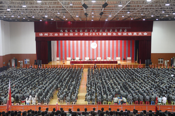 张芳儒副院长宣读了徐州工业职业技术学院2019级学生军训团任职令。2019级军训团编制分6个营、47个连、95个排,吴晓彬任团长,张海波任政委,王贵锋任副政委,53名素质过硬的教官担任军训团营连长。