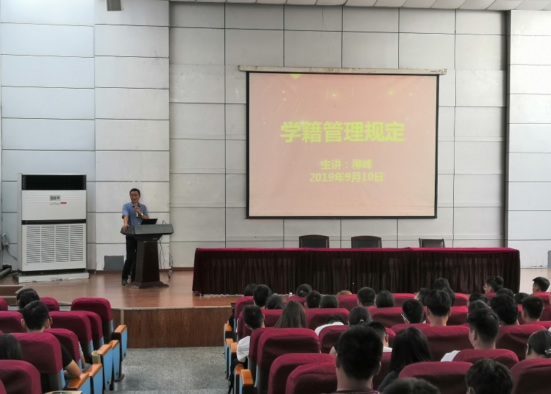柳峰副院长带领新生学习了学校学籍管理规定。他从学分制介绍、技能比赛、继续学习、课堂管理规定等方面进行了详细的讲述,让新生明白了大学的专业课程及实践技能学习应该是什么,应该做什么,应该怎么做,对日后学习环节做出清晰规划。