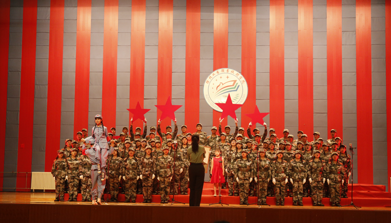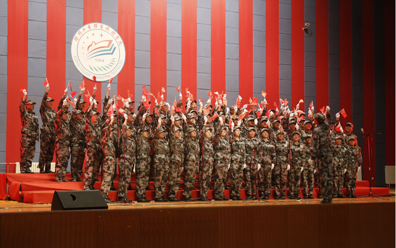 一营二连带歌曲《我们走在大路上》,以激昂的歌声唱出了新时代学子对中国特色社会主义的道路自信。