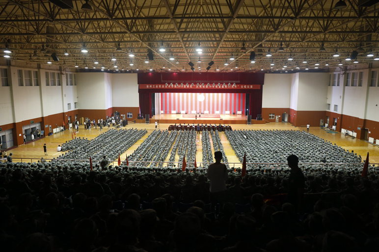 为庆祝新中国成立70周年和我校建校55周年,充分展示2019级学生青春昂扬的精神风貌,9月25日晚,2019级新生“庆祝祖国70华诞暨建校55周年”合唱比赛在体育馆隆重举行。校党委副书记李红、军训团团长吴晓斌出席活动,宣传部、关工委、学工部、武装部、校团委、机关党总支、校妇委会等部门负责同志出席本次比赛并担任评委,各二级学院副院长、辅导员及四千余名2019级学生参加本次活动。