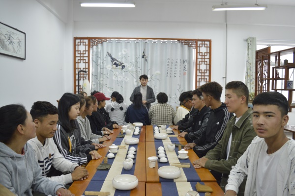 启动仪式结束后,党员和少数民族学生来到化工学院美育工作室,参加了“合家欢茶会”。茶会中,同学们一边学习茶道,一边聊天谈心,在高雅祥和的氛围中紧密地团结在一起。
