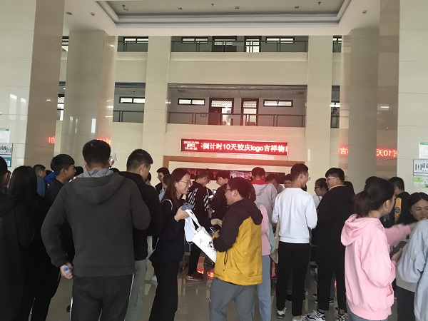10月9日,距离我校55周年校庆10天,为营造良好校庆氛围,为55周年校庆预热,党委宣传部在B18一楼开展倒计时10天暨校庆LOGO、吉祥物、口号发布会活动。