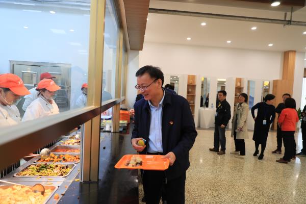 活动结束后,汤组长一行在祝木伟书记、李红副书记等校领导的陪同下,深入教职工餐厅与老师进行工作交流,并实地参观了我校正在建设中的文化中心和智慧党建中心。