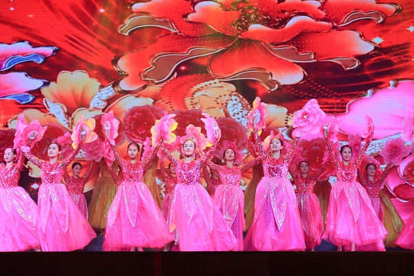 开场舞《花开盛世》通过喜庆、祥和、梦幻、璀璨辉煌的舞蹈场景,展现出新风貌、新精神、新形象,光芒绽放,表达出生逢盛世的喜悦情怀,迅速点燃了全场的热情。