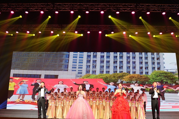 为庆祝中华人民共和国成立70周年、我校建校55周年,10月18日晚7点,我校在体育馆隆重举办文艺汇演。全体校领导、党委委员、校友代表、企业代表、师生代表四千余人现场观看了演出。