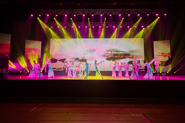在《今天是你的生日,中国》的歌声中,赵楠等四位教师为大家献上了红歌联唱,抒发了徐工职院人对祖国母亲深深的爱恋与祝福;民族舞《汉代乐舞——采薇》,展现出徐州作为汉文化发源地的独特魅力;赵音等六位青年师生深情朗诵《献给徐工职院的歌》,表达了青年教职工立足岗位、奉献学校的心声和对学校美好未来的祝愿。