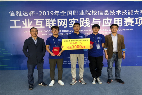 10月19日,2019年中国职业技术教育学会组织的全国职业院校信息技术技能大赛工业互联网实践与应用赛项在苏州职业大学举行,由信息与电气工程学院张江伟、凌启东老师指导的孙兴、任衍续、郭飞龙三位同学荣获团体一等奖,名次第一名。