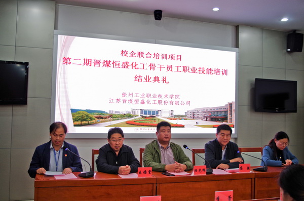 10月25日下午,由化工学院举办的校企联合培训项目第二期晋煤恒盛化工骨干员工职业技能培训结业典礼在我校视频会议室隆重举行。江苏晋煤恒盛化工股份有限公司人力资源部部长陆光辉、化工新材料研发中心主任王德堂、继续教育学院培训办公室主任李文姬、培训班任课教师及全体学员参加了活动。结业典礼由化学工程学院副院长高强主持。