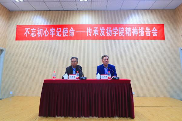 10月24日下午,学校“不忘初心、牢记使命”——传承发扬学院精神报告会在教师发展中心举行,原校党委书记周立雪教授应邀为全体中层以上干部作“五十五年风雨兼程 学院精神代代相传”主题报告。报告会由校党委书记祝木伟主持,全校领导、党委委员和中层干部参加了报告会。