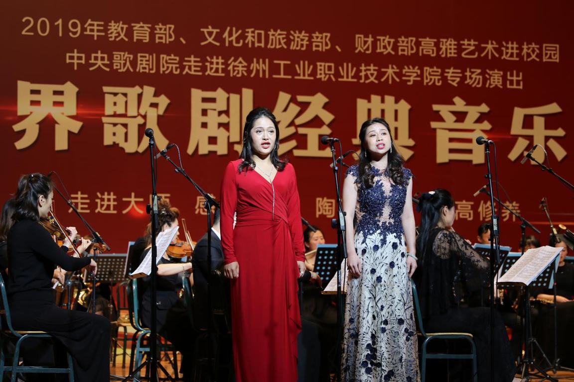 10月25日晚,由教育部、文化和旅游部、财政部主办的2019“高雅艺术进校园”中央歌剧院走进徐州工业职业技术学院专场演出在我校体育馆成功举办。中央歌剧院歌剧团和中央歌剧院交响乐团、青岛市歌舞剧院交响乐团近百位艺术家们为我校师生呈现了一场精彩的世界歌剧经典音乐会,党委副书记李红老师与学校4000余名师生共同观看了演出。音乐会由国家一级演员、中央歌剧院男中音歌唱家王立明及著名歌唱家孙雪曼主持,指挥家周小诗担任指挥。