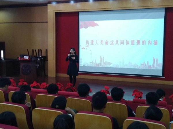 杨晶老师的巡讲主题是“构建人类命运共同体思想的内涵”,她先以当前学生们比较关注的热点新闻进行导入,用独特的切入点引起了学生们的好奇心,把课堂气氛完全启动起来,然后通过“世界怎么了”、“我们怎么办”、“意义是什么”三个模块,并结合大量生动的新闻故事以及身边故事把“人类命运共同体思想”的内容层层铺开,让思政课有意思、有意义,杨晶老师坚持的这种“热点+生活+深度”的讲课方式也赢得了兄弟院校师生的赞赏。