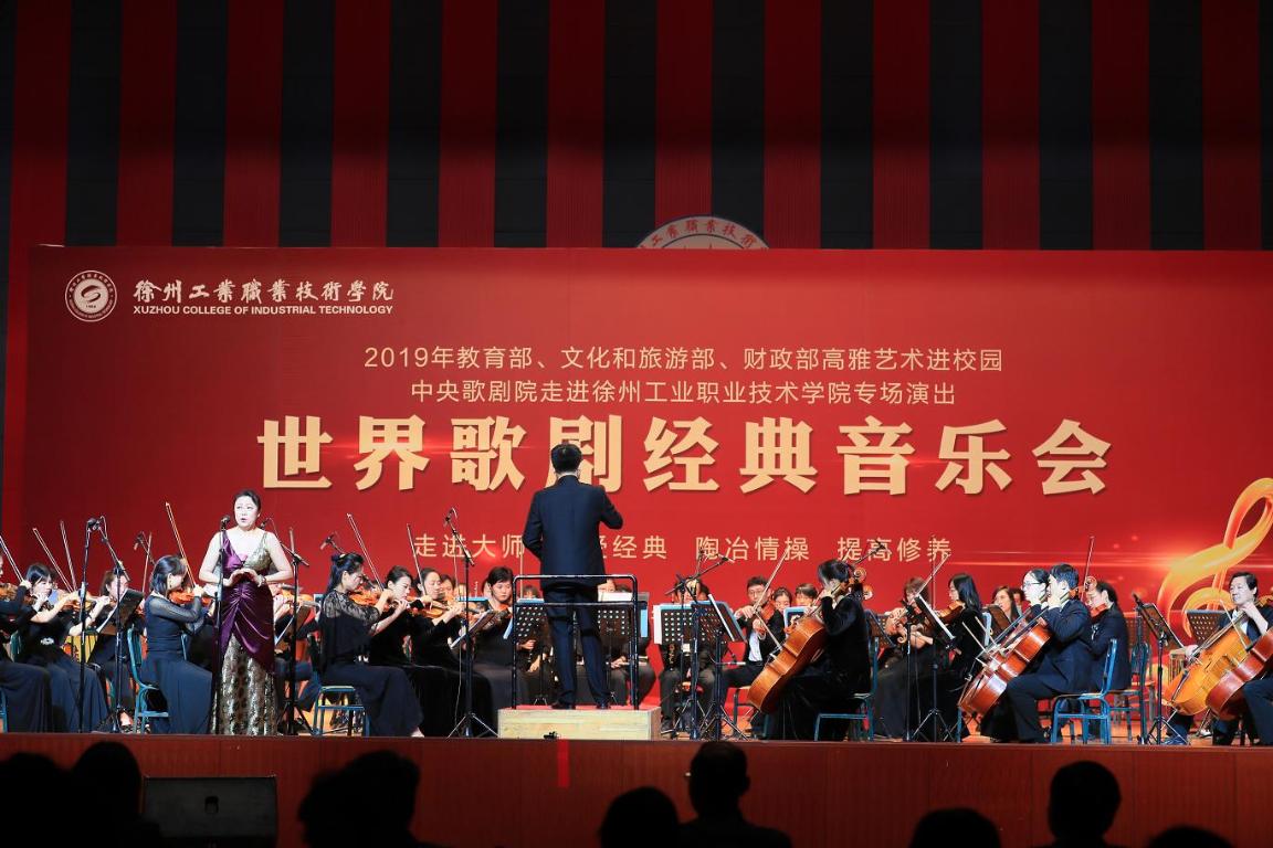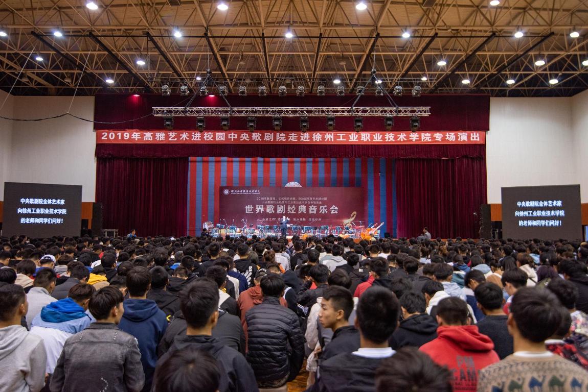 10月25日晚,由教育部、文化和旅游部、财政部主办的2019“高雅艺术进校园”中央歌剧院走进徐州工业职业技术学院专场演出在我校体育馆成功举办。中央歌剧院歌剧团和中央歌剧院交响乐团、青岛市歌舞剧院交响乐团近百位艺术家们为我校师生呈现了一场精彩的世界歌剧经典音乐会,党委副书记李红老师与学校4000余名师生共同观看了演出。音乐会由国家一级演员、中央歌剧院男中音歌唱家王立明及著名歌唱家孙雪曼主持,指挥家周小诗担任指挥。