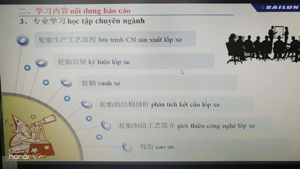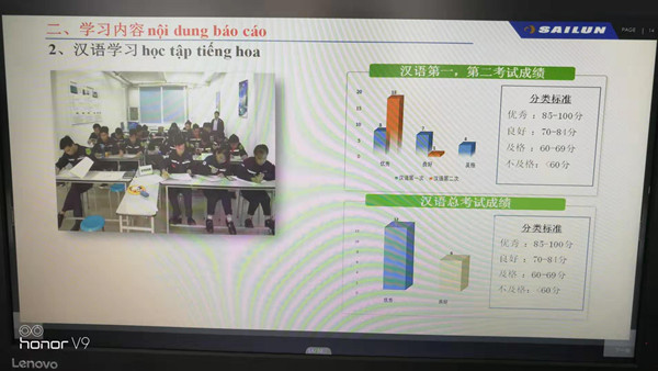 本次研修培训延续第一批学员培训的模式,由我校选派汉语老师对学员进行汉语培训,橡胶工艺老师对学员进行橡胶理论方面的培训,青岛赛轮集团对学员进行各工种现场操作培训。国际教育学院韩善化老师和材料工程学院的张馨老师、邵明泽老师结合越南学员特点,紧扣岗位要求,融合行业先进理念,合理制定教学计划,认真备课,积极上课,圆满完成培训任务。韩善化老师被评为优秀培训老师。青岛赛轮集团对我校克服各种困难,坚持节假日不休息,连续奋战,表示感谢。