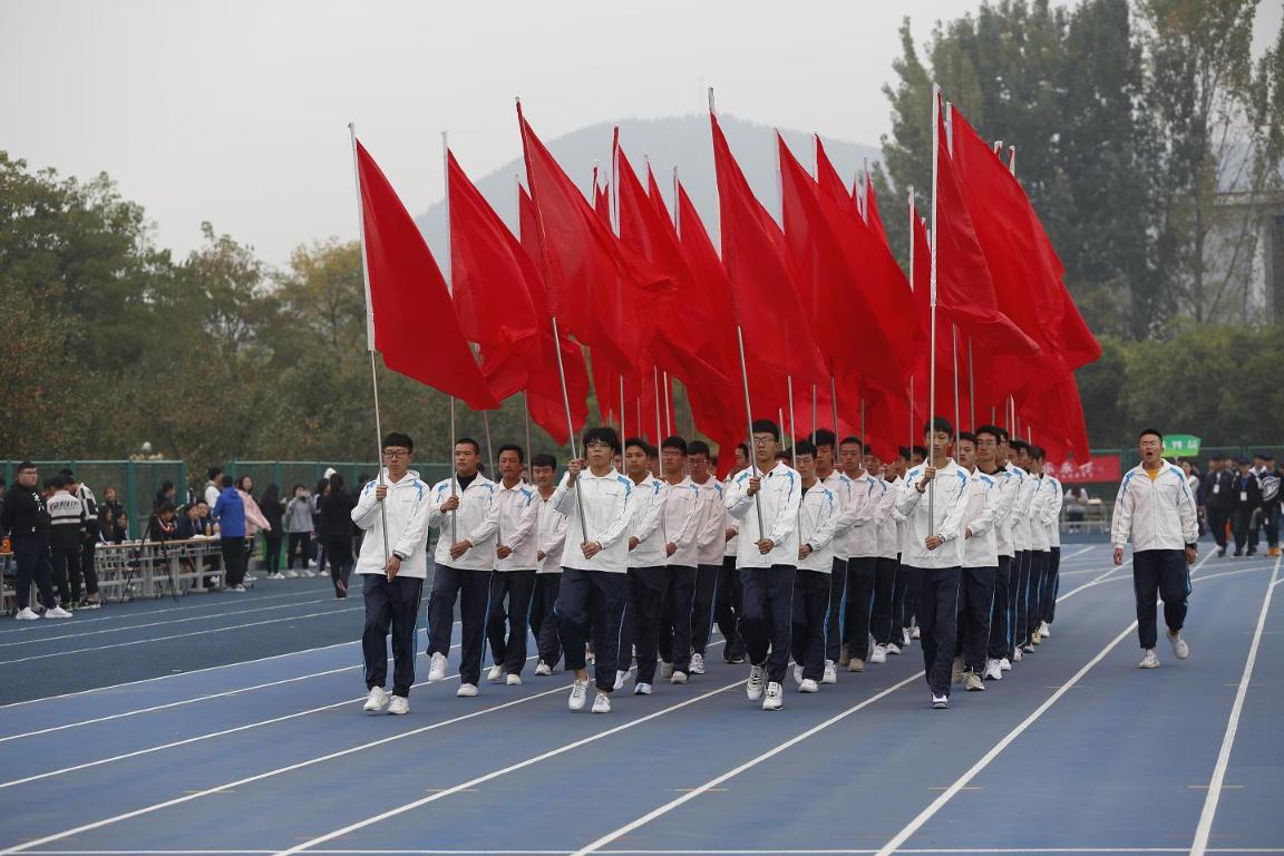 各代表队意气风发、青春飞扬,国旗方队步伐整齐、庄严威武;校旗队、彩旗队、裁判员方队和运动员方队在雄壮的运动员进行曲中依次通过主席台接受检阅,展现了各自的特色与风采。入场式后,举行了升国旗仪式,张辉老师代表裁判员宣誓,张子暄同学代表运动员宣誓,总裁判长巩庆伟副主任宣布了大会须知。