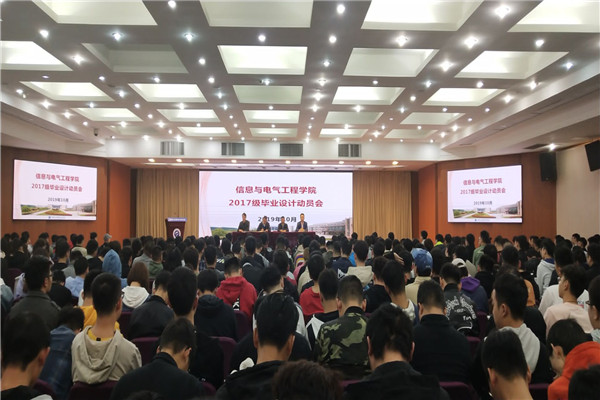 为确保我院2020届毕业生毕业设计和顶岗实习工作顺利进行,10月29日上午,信息与电气工程学院在图书馆报告厅举办2017级毕业设计暨顶岗实习动员大会。学院院长陈祥章,党总支书记丁振华,副院长王方杰、徐忠杰出席本次大会;全体辅导员、2017级班主任和全体同学参加了本次动员会,会议由副院长徐忠杰主持。