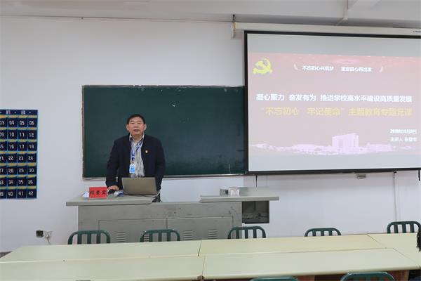 张院长还从历史沿革、教育教学、学科建设、人才培养等方面介绍了学校建校五十五年来的发展历程,并结合主题教育调研成果,梳理学校在党建和思政队伍、辅导员队伍建设、师资队伍建设等方面存在的问题。张院长强调,作为特色鲜明的高职院校,全校上下要以本次主题教育为契机,不忘为党育人的初心、牢记为国育才的使命,深入学习贯彻习近平新时代中国特色社会主义思想,锤炼忠诚干净担当的政治品格;勇担职责使命,焕发干事创业的精气神;坚持立德树人,培养合格的社会主义建设者和接班人。
