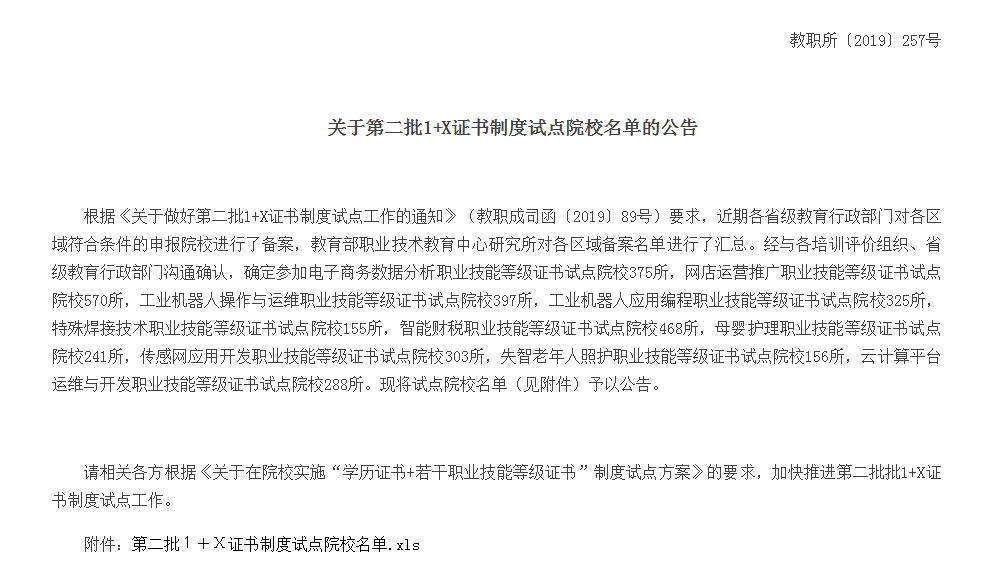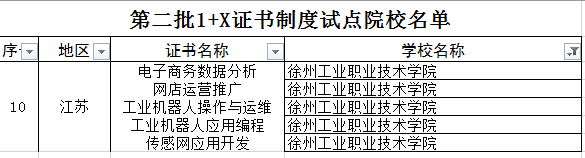 10月10日,教育部职业技术教育中心研究所公布了《第二批1+X证书制度试点院校名单》,我校成功入选电子商务数据分析、网店运营推广、工业机器人操作与运维、工业机器人应用编程、传感网应用开发职业技能等级证书试点,与其他高职院校并列成为获批数最多的院校。加上首批入选的物流管理专业,我校已成为拥有6个专业证书制度试点的院校。
