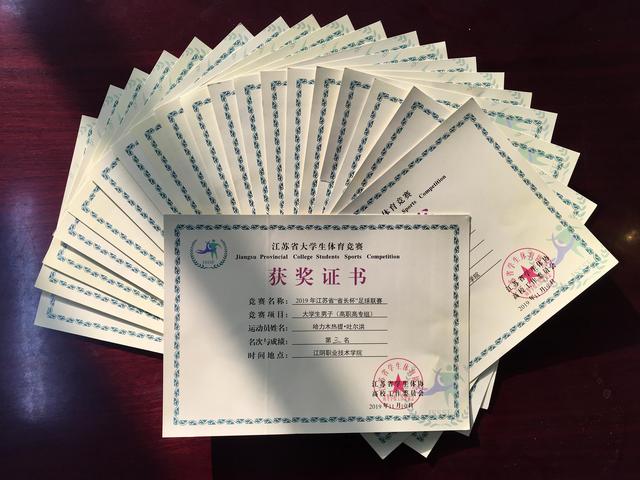 2019年江苏省“省长杯”大学生足球联赛高职高专组总决赛于11月14日在江阴职业技术学院拉开了帷幕。来自苏南、苏中、苏北、南京四大分赛区的8支球队参加了总决赛,最终我校男子足球队荣获“省长杯”大学生足球联赛高职高专组第三名。
