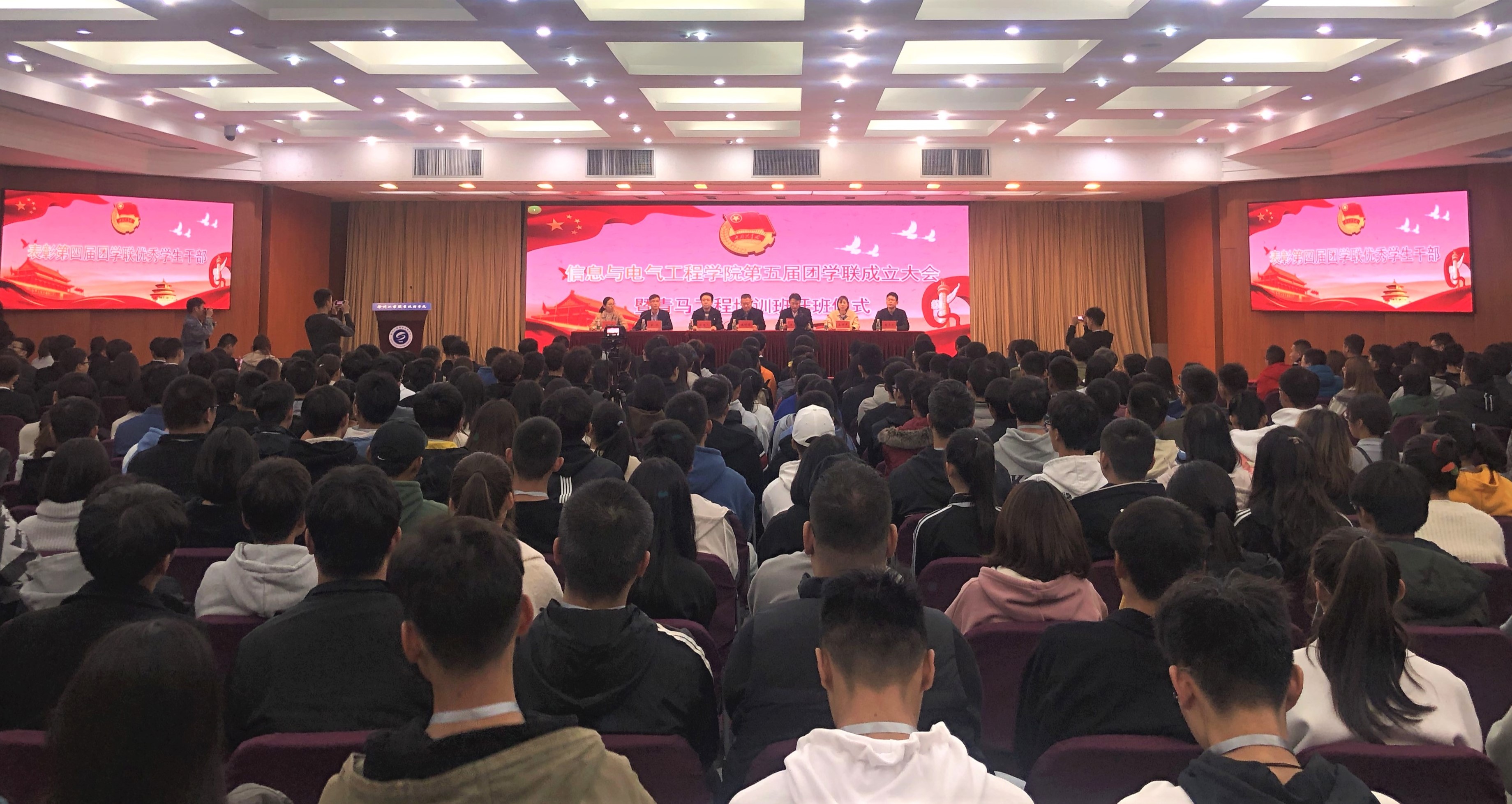 11月22日,信息与电气工程学院第五届团学联成立大会暨青马培训班开班仪式在图书馆报告厅顺利举行。信息与电气工程学院院长陈祥章、副院长王方杰、徐忠杰,各年级辅导员老师出席会议。校学生会、校社团联合会、大学生自管会、各二级学院学生会、社团联合会主席,第五届团学联全体成员共计400余人参加了会议。会议由信息与电气工程学院团总支书记翁远主持。