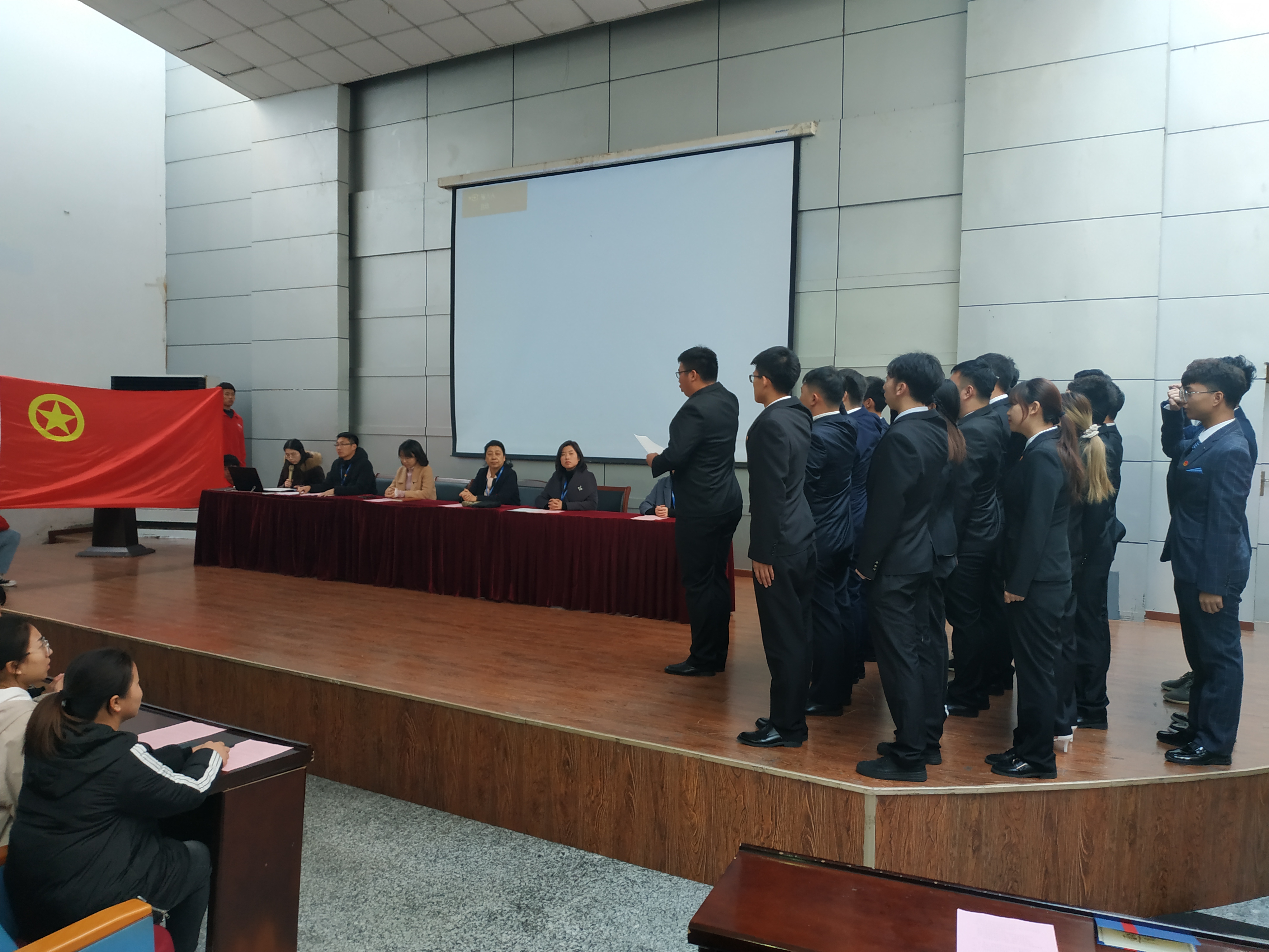 随后,庞世华老师宣读了材料工程学院新一届团学组织学生干部聘任名单,并为材料工程学院第十二届团学联授旗。新一届学生会主席李安明同学进行了工作展望,从思想道德建设、学风建设、文体活动、工作创新等方面进行了详细规划,并带领第九届团学组织学生干部进行了庄严宣誓。在全场的注视下,两届团学组织代表举行了交旗仪式。