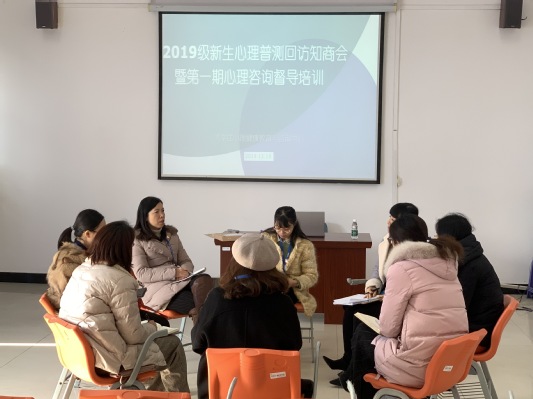 12月19日上午,学生工作处在大学生心理健康教育与咨询中心团体辅导室召开2019级新生心理普测回访知商会暨第一期理咨询同辈督导,本次会议由大学生心理健康教育与咨询中心主任马千珉主持,学生工作处副处长安莹以及各学院专兼职心理教师参加此次活动。