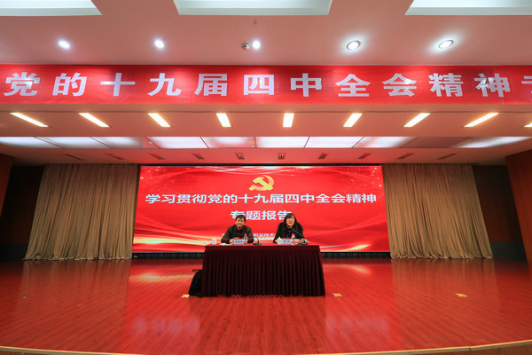 李红副书记作总结讲话。她指出,专题报告主题鲜明、内涵丰富,对我校全面准确把握党的十九届四中全会精神,推进学校的治理体系和治理能力现代化建设,具有重要的理论和现实指导意义。她要求全校师生深入学习贯彻党的十九届四中全会精神,把贯彻落实全会精神与日常工作和学校发展紧密结合起来,以扎实有效的实际行动促进全会精神落地落实。
